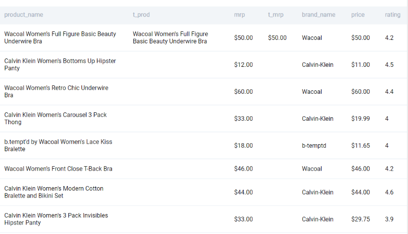 The problem uses the innerwear_amazon_com dataset that we saw in the previous problem with the following fields.