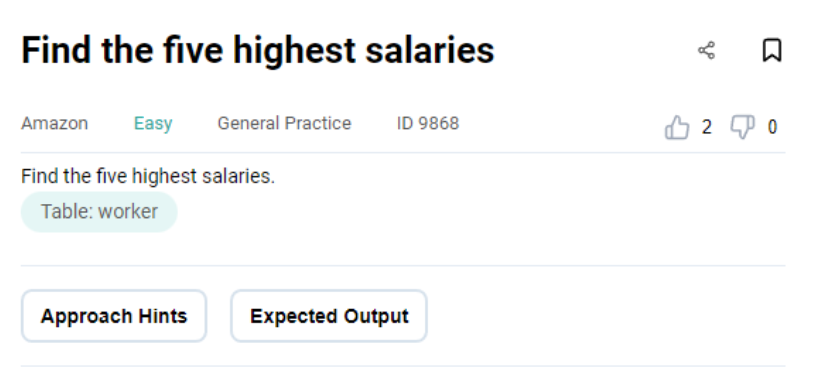 Amazon Data Engineer Interview Question #2: Find the five highest salaries