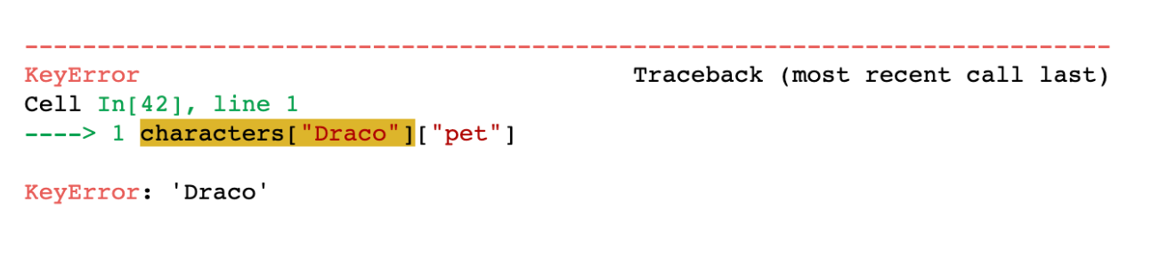 For example, the following code prints “Character not found” if “Voldemort” isn't key in “characters”. This is what the second argument in get() does.