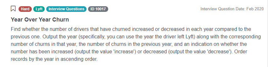 You can solve the full https://platform.stratascratch.com/coding/10017-year-over-year-churn